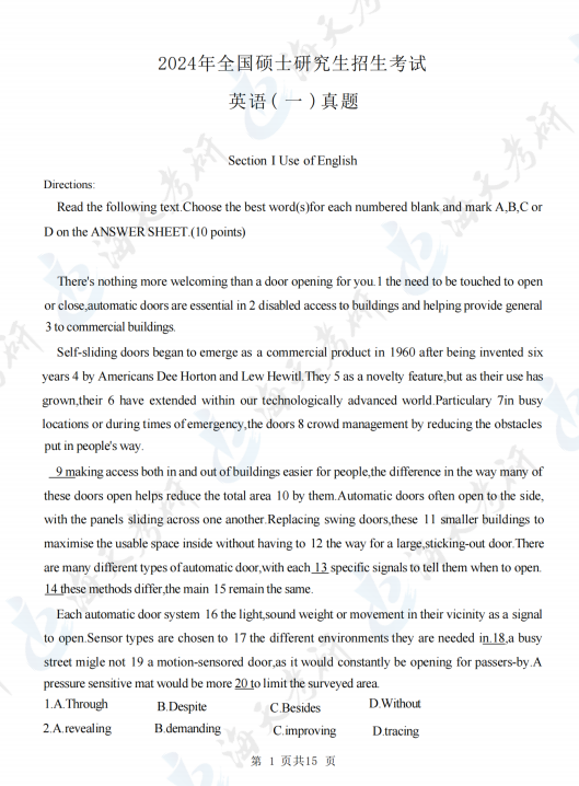 以上就是海天考研网为各位考生整理的2024考研英语一真题及解析汇总,持续为考研学子更新其他考研科目考研真题及答案解析,各位考生可以根据自身需要关注收藏,及时查看完整版2024考研真题及答案解析。